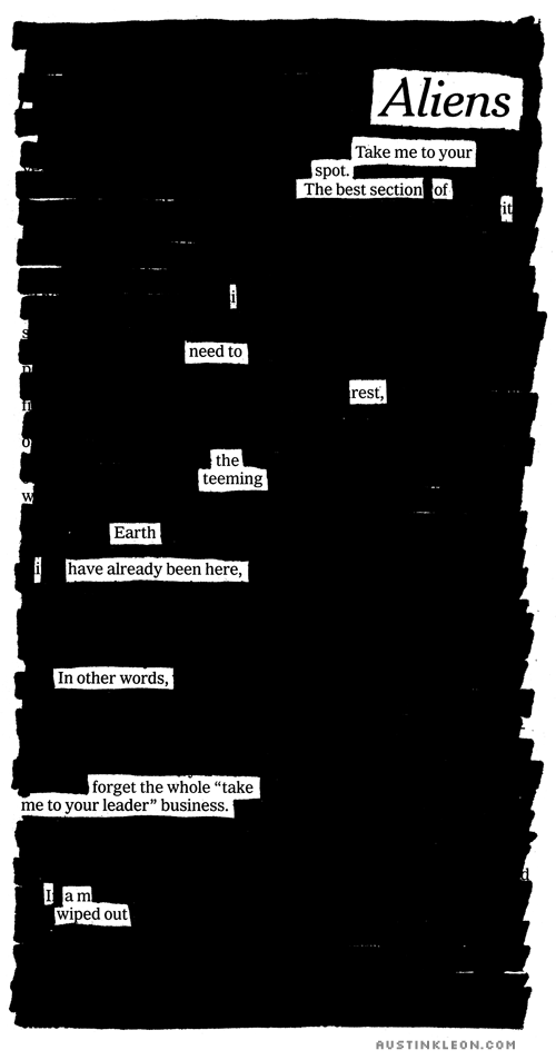 Instead of starting with a blank page, poet Austin Kleon grabs the New York Times and a permanent marker and eliminates the words he doesn’t need.— NPR’s Morning Edition