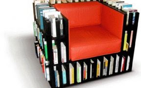 Via Booktagger Blog A bibliochaise would mean you always have a book within reach and can conserve on space by not investing in a separate set of bookshelves. Image Source