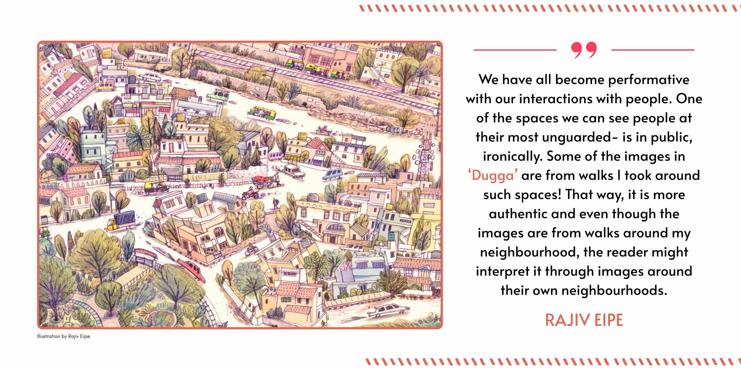So our team reached out to some of India’s finest picture-book illustrators with a simple brief: You’re stepping out for a walk. You have two spreads. What will you draw and how?