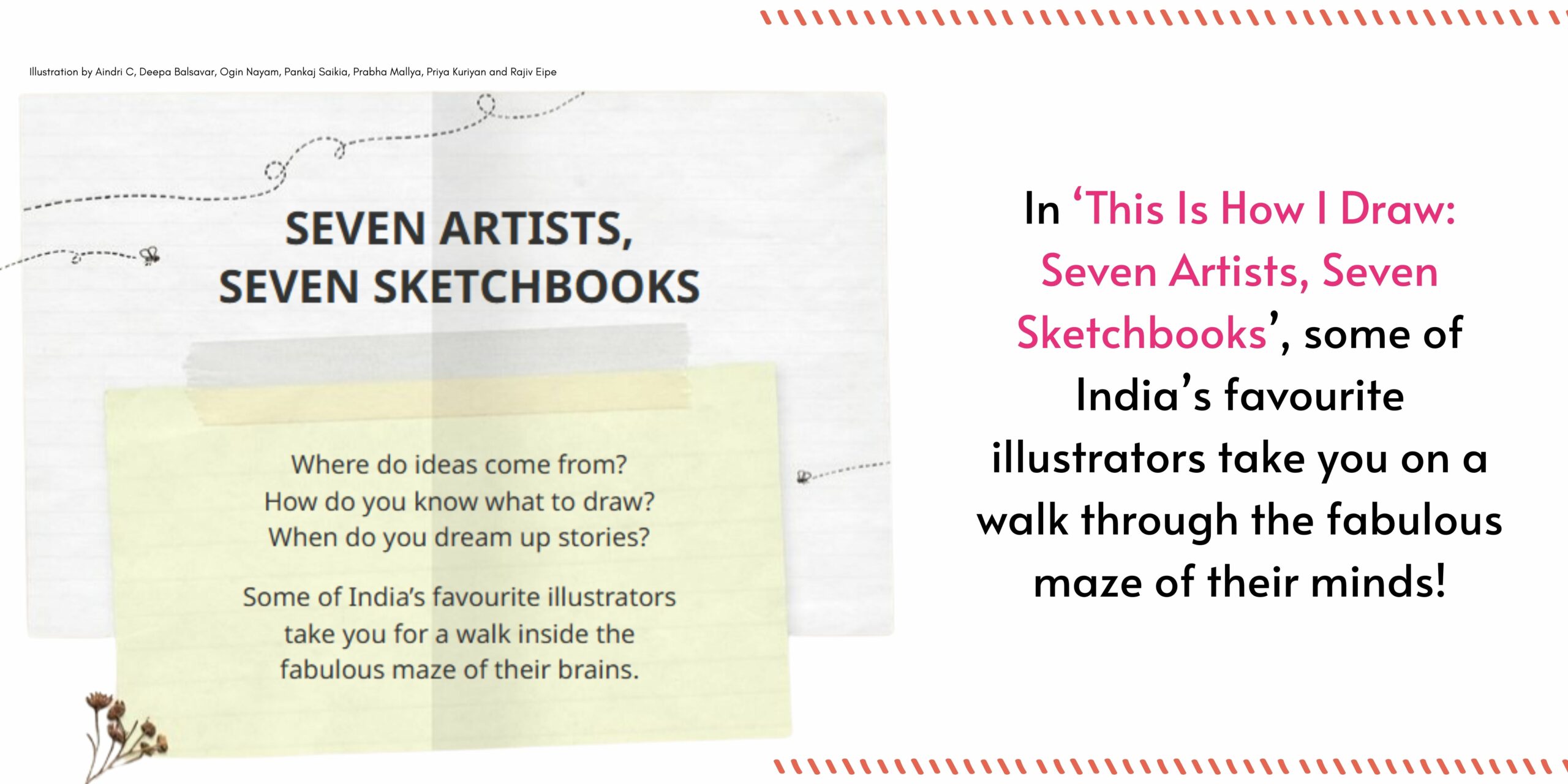 Blending everyday observations with imaginative leaps, the book offers children, educators, and anyone who loves art a rare glimpse into the minds of seven celebrated illustrators — Aindri C, Deepa Balsavar, Ogin Nayam, Pankaj Saikia, Prabha Mallya, Priya Kuriyan, and Rajiv Eipe — and the creative journey behind a picture book. In that process, it could also become a hands-on guide to nurture visual literacy in children, teaching them to decode images, interpret emotions, and build stories through guided prompts and real artist sketchbooks.
